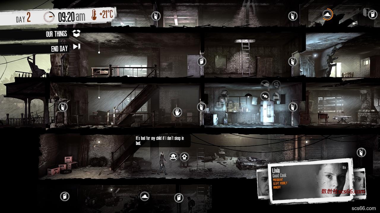 在《这是我的战争》中,你扮演的不是精英士兵,而是一群在被围攻的城市中求生存的平民。你们食物、药物紧缺,还得时刻防范狙击手和敌对的拾荒者。这款游戏从全新的角度让玩家体验身处战争的感受。