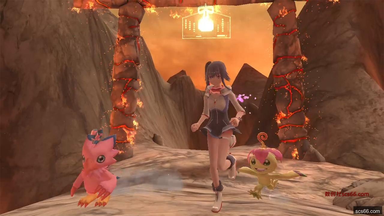 「开拓镇」因机械邪龙兽的袭击崩毁,居民也散落各地。玩家要以这座城镇为基地,与伙伴数码宝贝一起在数码世界中冒险,获得情报与道具来完成任务。