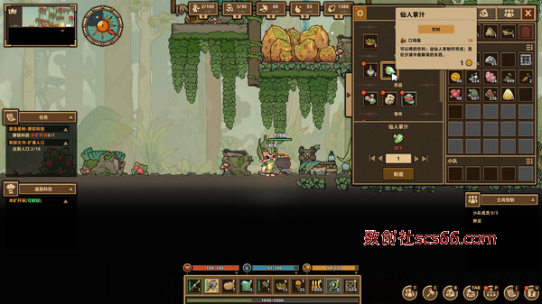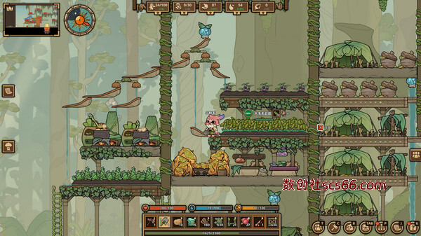 在圣树上收集资源,制造工具和武器,新的资源和新的科技都会解锁更多可制造物品,不断提升才能生存下去!