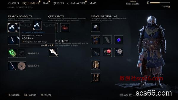 在冒险中,你可以根据自己的风格塑造角色。通过各种系统和增益,以及各种装备,包括武器、法术、盾牌、盔甲等等,帮助你打造独一无二的角色。